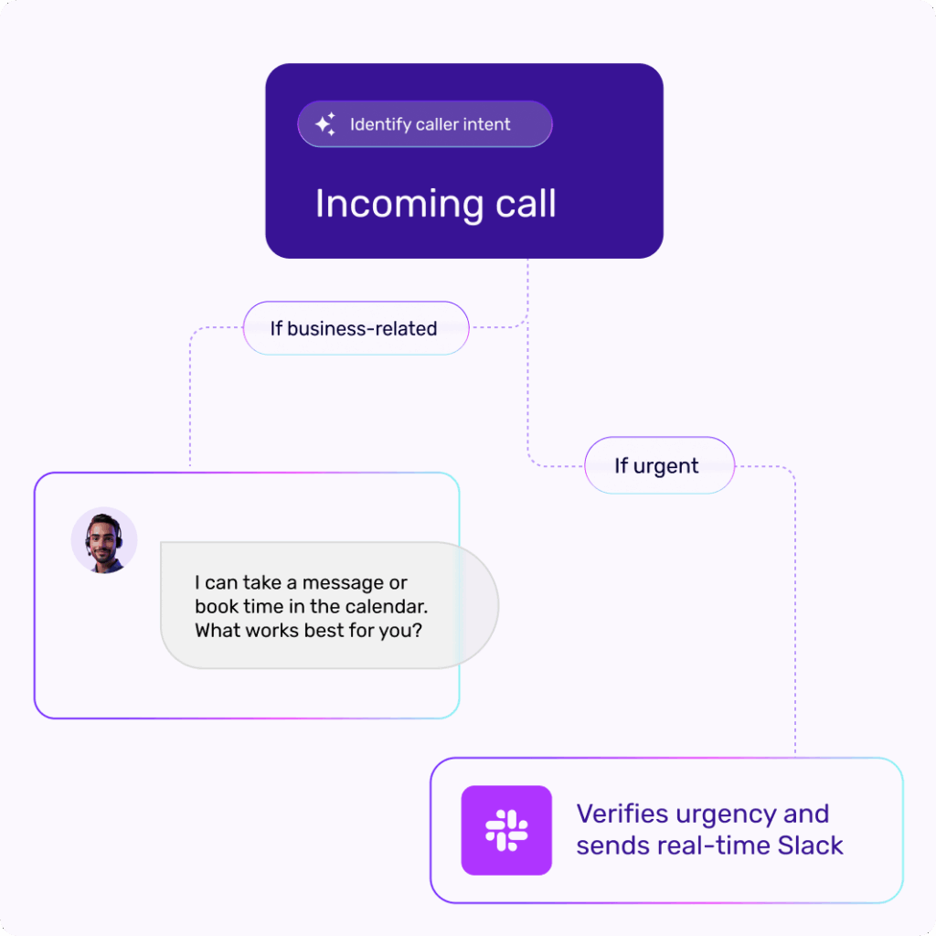 Every caller gets the same sharp questions. Your agent qualifies leads, captures details, and routes hot prospects to the right person—fast.