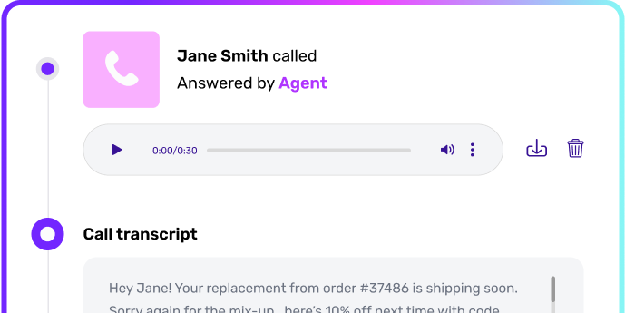 “Where’s my delivery?” Your agent pulls real-time status from your systems and gives callers the answer on the spot.